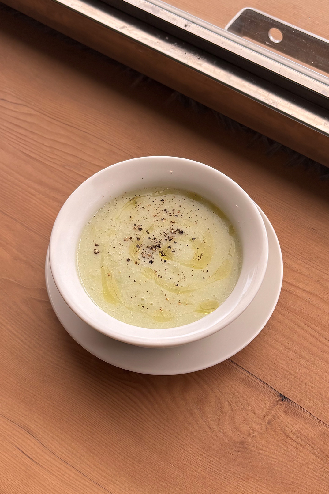 가장 먼저 나온 건 대파 감자 수프였어요.