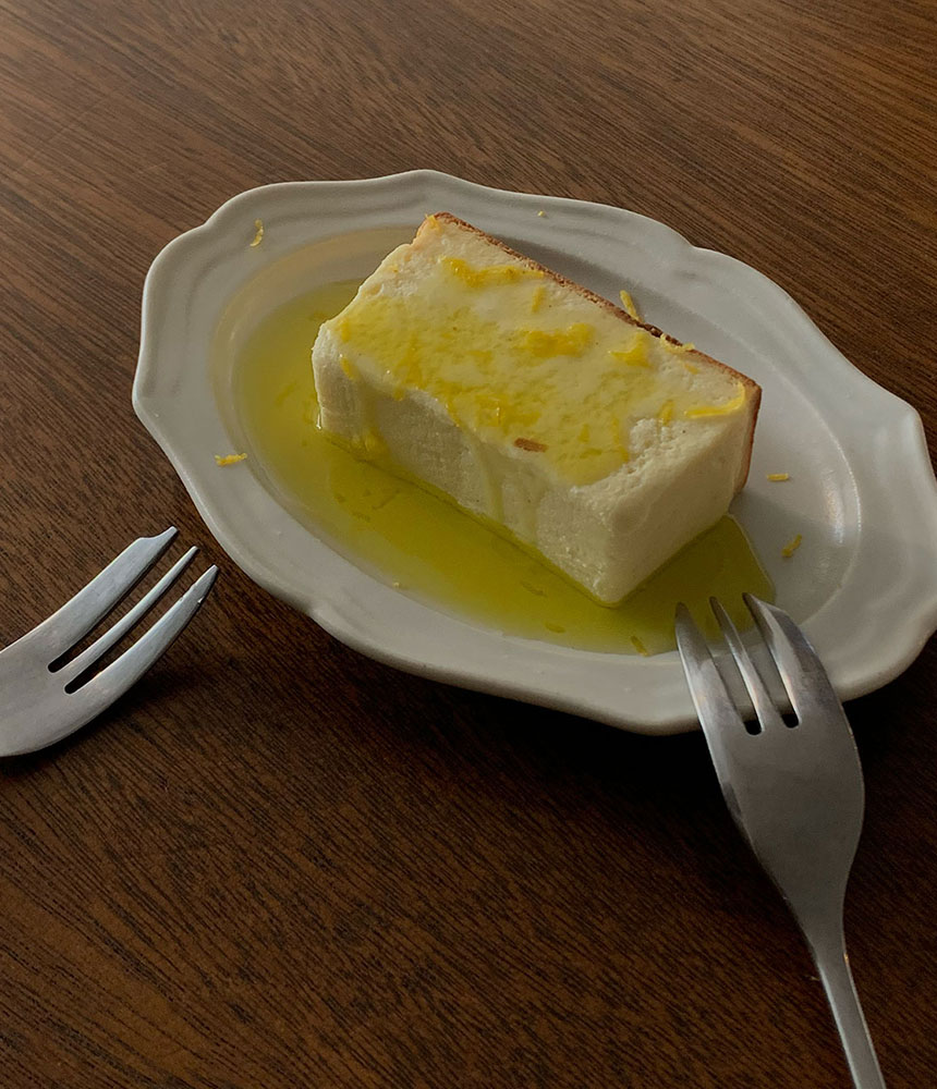 올리브오일과 치즈향이 어우러지며 치즈케이크가 아닌 새로운 디저트 같았다.