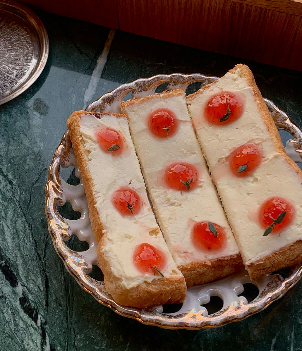 토스트에 크림치즈 바르고 딸기잼 올린 것이 이렇게 귀여울 일인가!