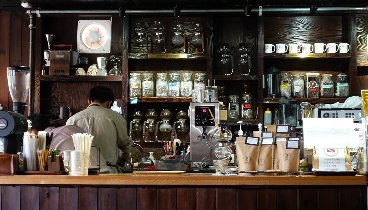 신촌에서 가장 오래된 원두커피 전문점으로 자리 잡고 있다.