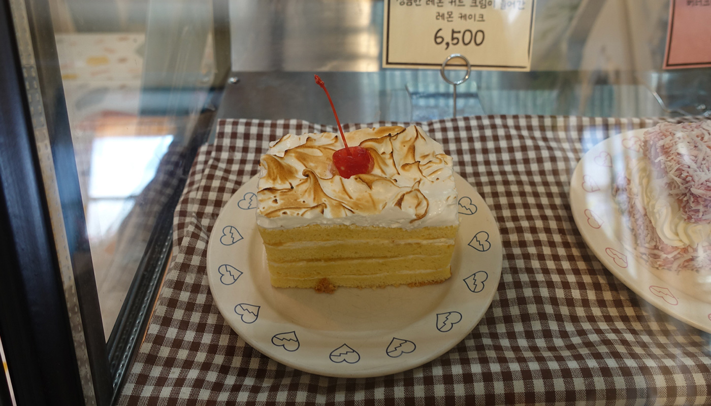 쇼케이스에는 레몬 케이크, 레밍턴 케이크,