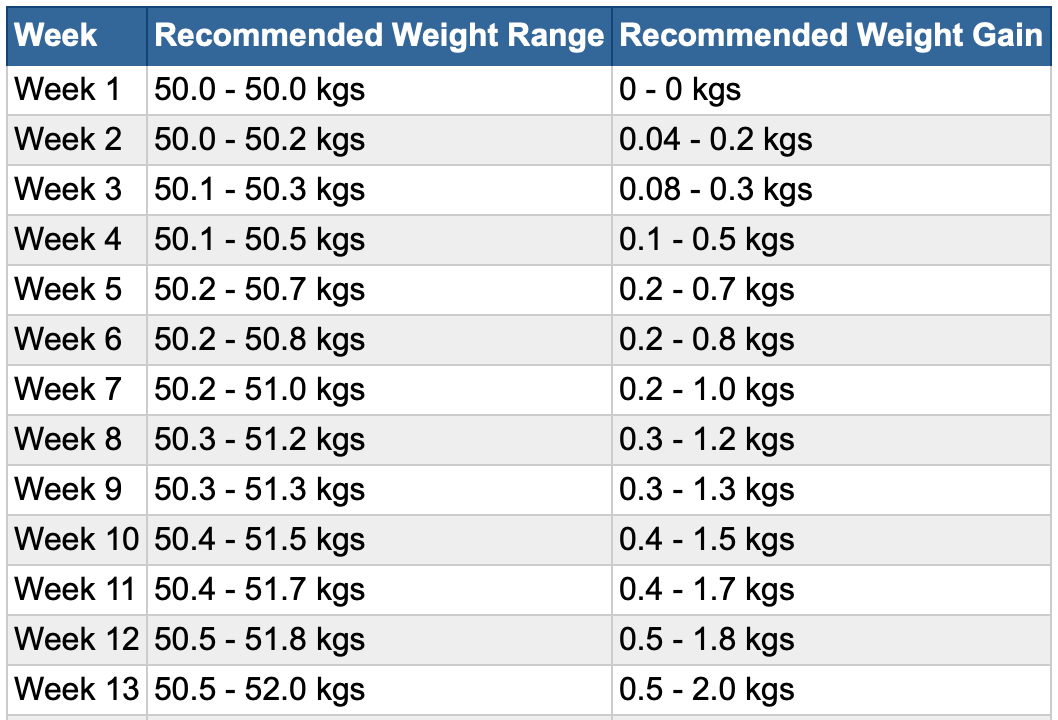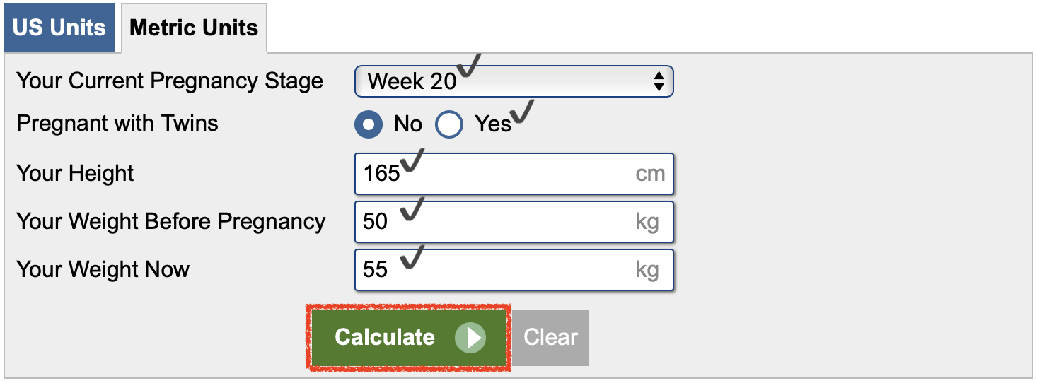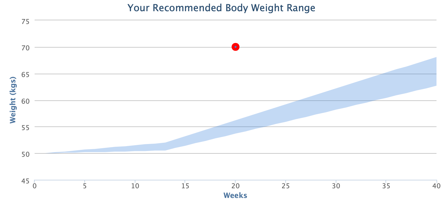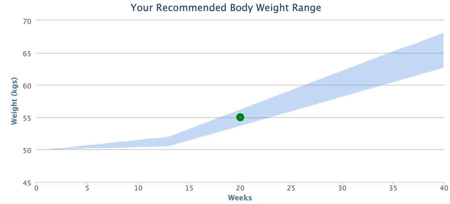 Pregnancy Weight Gain Calculator The Pregnancy Weight Gain Calculator estimates a schedule for healthy weight gain based on guidelines from the Institute of Medicine. Recommended weight gain during pregnancy Pregnancy can lead to significant changes to wom