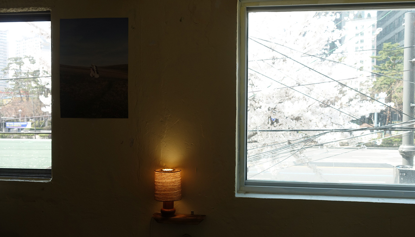 어쩜 창밖으로 벚꽃 나무가 딱 보이는지,