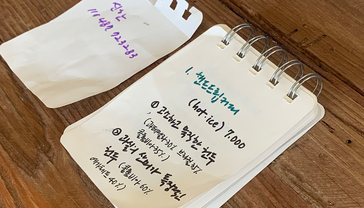 메뉴판에는 한 장에 메뉴 1개씩 적혀있고