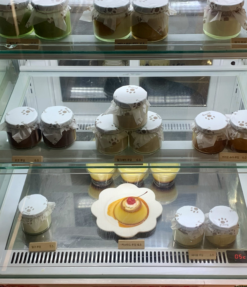 메뉴 : 밀크 푸딩, 초코 푸딩, 얼그레이 푸딩, 말차 푸딩 등